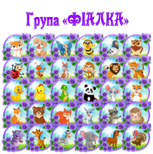 Група «Фіалка». Наліпки на шафки, ліжка чи рушнички. В набір входить емблема та 30 наліпок.