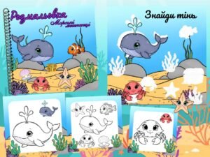 Шаблон Мешканці моря та океану розмальовки + ігри на липучках