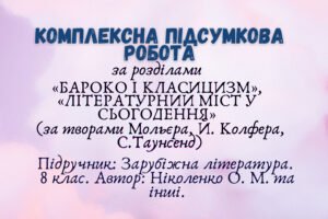 Комплексна підсумкова робота за розділами «Бароко і класицизм», «Літературний міст у сьогодення» (за творами Мольєра, Й. Колфера, С.Таунсенд)