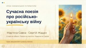 “Сучасна поезія про російсько-українську війну. Мар’яна Савка. Поезія «Мій Бог формує всю ніч батальйони». Сергій Жадан. Поезія «Чекають вечора люди, схожі на равликів…» МНП Заболотного.