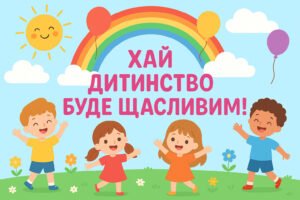 Плакат для оформлення фотозони “Хай дитинство буде щасливим!” до Дня захисту дітей 20 листопада