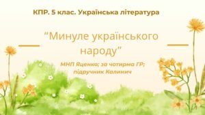 5 клас. Українська література. Комплексна підсумкова робота. «Минуле українського народу» за чотирма групами результатів. Модельна навчальна програма Яценко, підручник Калинич.