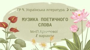 ГР 3 .5 клас. Українська література. Підсумкова (діагностична) робота «Музика поетичного слова» (творчість Т.Шевченка, П.Тичини, Є.Гуцала, М.Вінграновського, М.Рильського) МНП Архипової).
