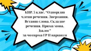 Комплексна підсумкова робота з укр.мови для 5 класу “Однорідні члени речення. Звертання. Вставні слова. Складне речення. Пряма мова. Діалог” зачотирма ГР ІІ варіанти