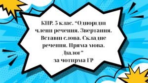 КПР. 5 клас. “Словосполучення. Речення. Головні та другорядні члени речення” за чотирма ГР