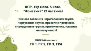 Комплексна підсумкова робота. 5 клас. Українська мова. “Фонетика” ІІ ч. ГР 1, ГР 2, ГР 3, ГР 4