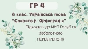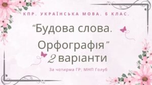 ГР 4. Підсумкова (діагностична) робота з української мови для 6 класу НУШ. Тема “Будова слова. Орфографія” (модельна навчальна програма Голуб).