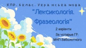 Комплексна підсумкова робота з української мови для 6 класу НУШ містить завдання за чотирма групами результатів.Тема “Лексикологія. Фразеологія” (модельна навчальна програма Заболотного).