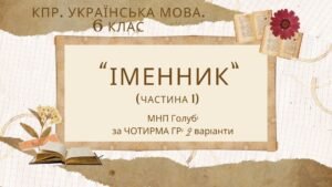 Комплексна ПР. 6 клас. Українська мова “Іменник (частина 1)” ГР 1, ГР 2, ГР 3, ГР 4 (МНП Голуб)