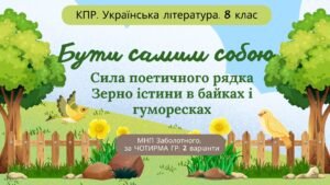 ГР 1. Підсумкова робота з української літератури для 8 класу “Бути самим собою (Сила поетичного рядка Зерно істини в байках і гуморесках)” за модельною навчальною програмою Заболотного