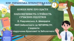 ГР 4. Підсумкова (діагностична) робота з української літератури для 8 класу “Кожен мріє про щастя. Наполегливість і стійкість сучасних підлітків” за модельною навчальною програмою Заболотного