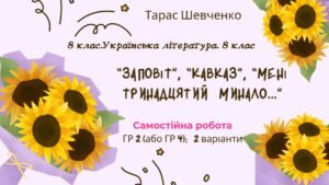 ГР 2 або ГР 4. Самостійна робота за творчістю Тараса Шевченка (“Заповіт”, “Кавказ”, “Мені тринадцятий минало…”. 8 клас. Українська література. МНП Заболотного