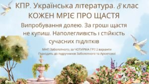 Комплексна підсумкова робота з української літератури для 8 класу “Кожен мріє про щастя (Наполегливість і стійкість сучасних підлітків)” ГР 1, ГР 2, ГР 3, ГР 4 за МНП Заболотного