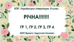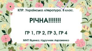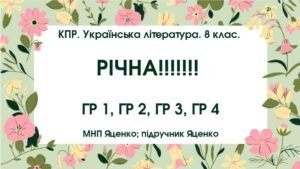 КПР з української літератури для 8 класу НУШ “Проза ХІХ століття: від романтизму до реалізму”; ГР 1, ГР 2, ГР 3, ГР 4. МНП Яценко, підручник Авраменка (М. Гоголь, Іван Нечуй-Левицький, Б. Жолдак)
