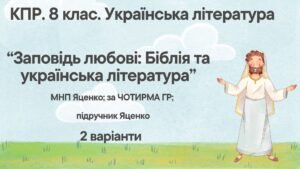 ГР 4. Підсумкова (діагностична) робота з української літератури для 8 класу НУШ “Заповідь любові: Біблія та українська література”. МНП Яценко, підручник Калинич