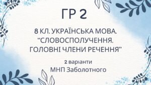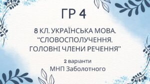 ГР 4. Підсумкова (діагностична) робота. 8 клас. Українська мова. “Словосполучення. Головні члени речення”. 2 варіанти МНП Заболотного