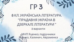 ГР 3. Підсумкова (діагностична) робота. 8 клас. Українська література. “Прадавня Україна в дзеркалі літератури” за МН програмою Яценко, підходить до підручників Яценко, Калинич, Авраменка