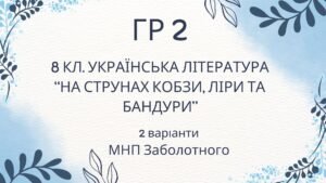 ГР 2. Підсумкова (діагностична) робота. 8 клас. Українська література. “На струнах кобзи, ліри та бандури”. 2 варіанти за модельною навчальною програмою Заболотного.