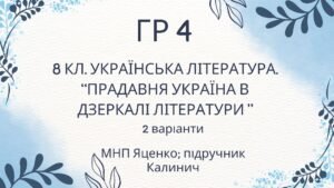 Комплексна підсумкова робота з української літератури для 8 класу НУШ “Прадавня Україна в дзеркалі літератури” містить завдання за чотирма ГР. МНП Яценко, підручник Калинич