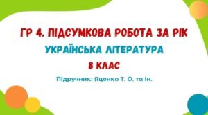 ГР 4. Підсумкова робота за рік. Українська література. 8 клас НУШ (підручник: Яценко Т. О. та ін.)