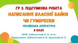 ГР 3. Підсумкова робота. Написання власної байки чи гуморески. Українська література. 8 клас НУШ (МНП: Заболотний О. В. та ін.).