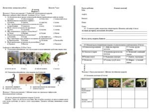 Діагностична контрольна робота Біологія 7 клас Тема 7. Різноманітність тварин (Безхребетні тва