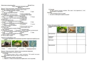 Діагностична контрольна робота Біологія 7 клас Тема 8. Середовища існування тварин