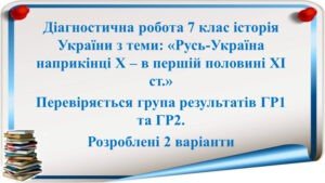 Діагностувальна робота за групами результатів з історії України 7 клас з теми: “Русь-Україна наприкінці Х – в першій поовині ХІ ст.”