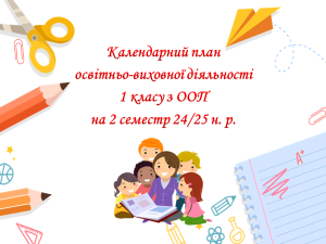 Календарний план освітньо-виховної діяльності 1 класу з ООП на 2 семестр 24/25 н. р.