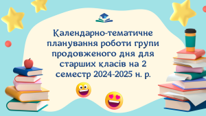 Змістовне календарно-тематичне планування роботи групи продовженого дня для старших класів на 2 семестр 2024-2025 н. р.
