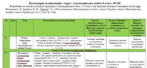 Календарне планування з громадянської освіти 8 клас НУШ Васильків І.