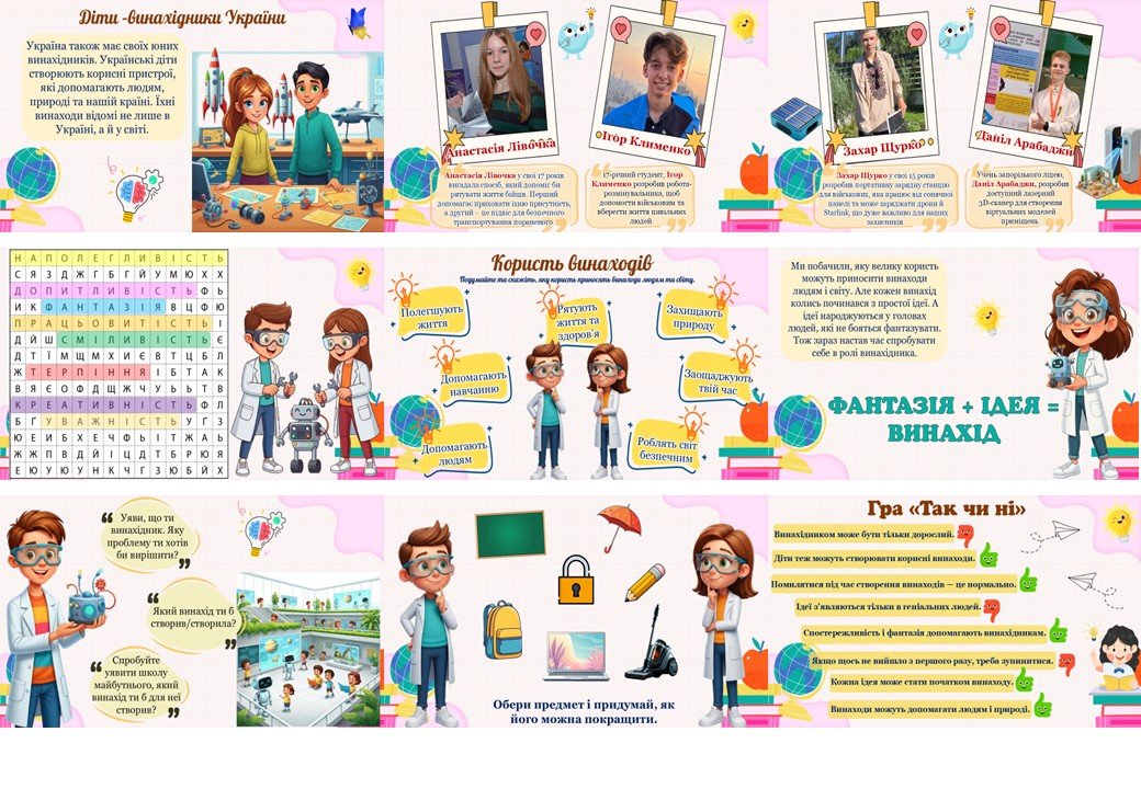 Матеріал сприяє розвитку креативного мислення, допитливості, віри у власні можливості та зацікавленню наукою й винахідництвом.