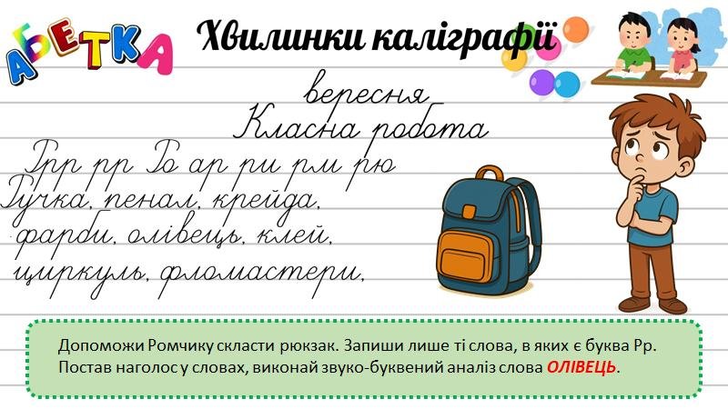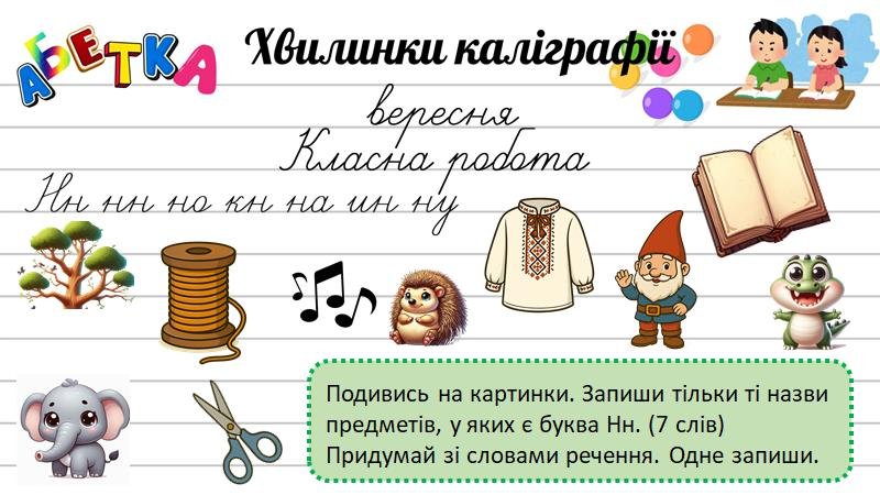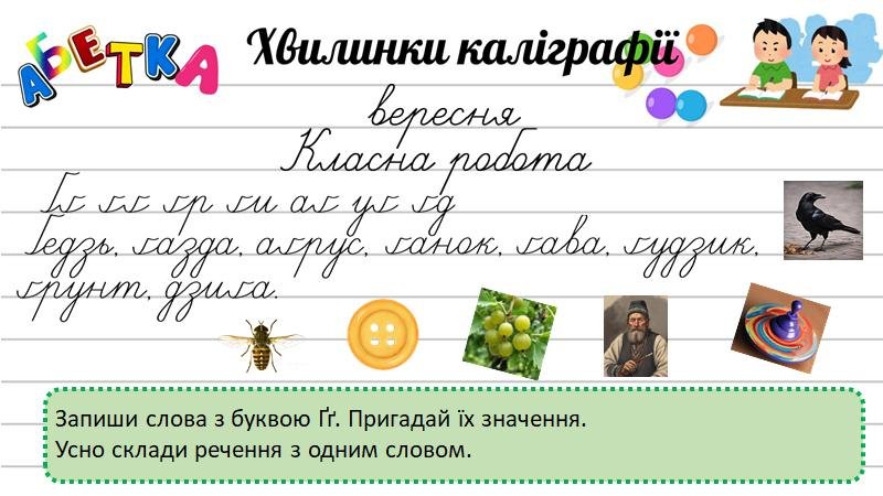 - Практика написання окремих елементів: навчить правильно писати букви, буквосполучення, слова.
