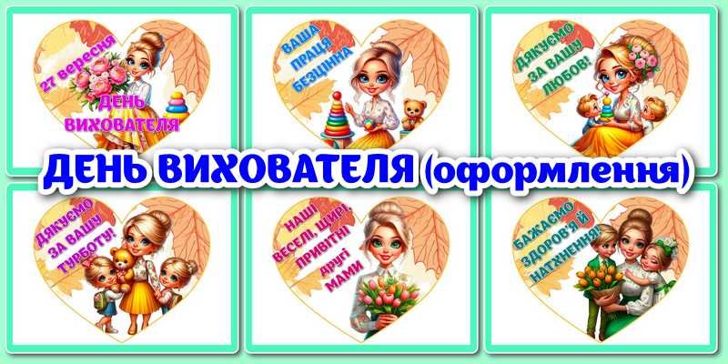Матеріали «!!! 27 ВЕРЕСНЯ – ДЕНЬ ВИХОВАТЕЛЯ І ДОШКІЛЬНИХ ПРАЦІВНИКІВ (оформлення – хмаринки, серця, кульки, портфоліо групи, декор до свята)» будуть надіслані в електронному вигляді на вашу поштову скриньку одразу після оплати.