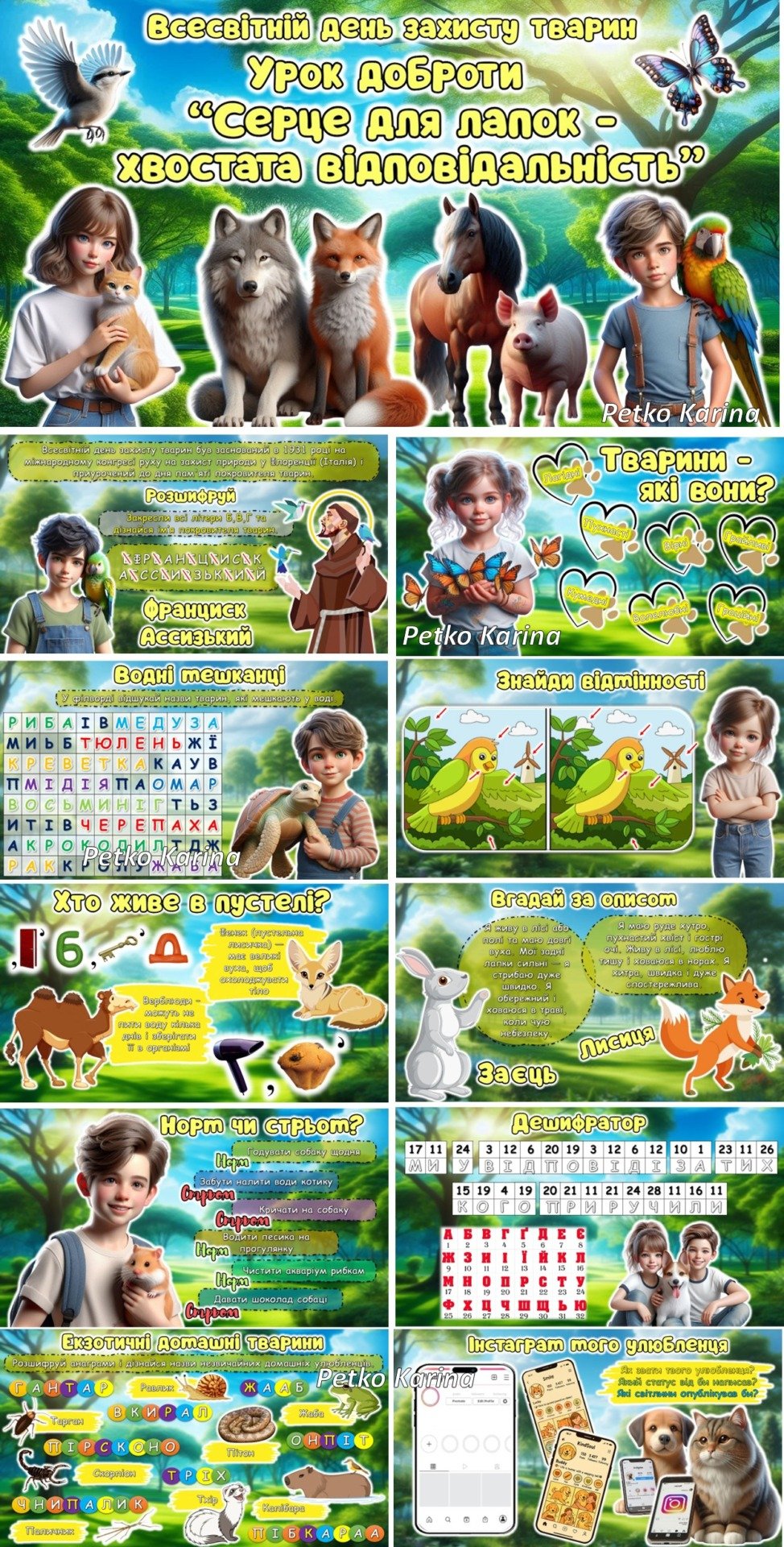 4 жовтня – Всесвітній день захисту тварин. Урок доброти. Анімована інформаційно-ігрова презентація “Серце для лапок – хвостата відповідальність”