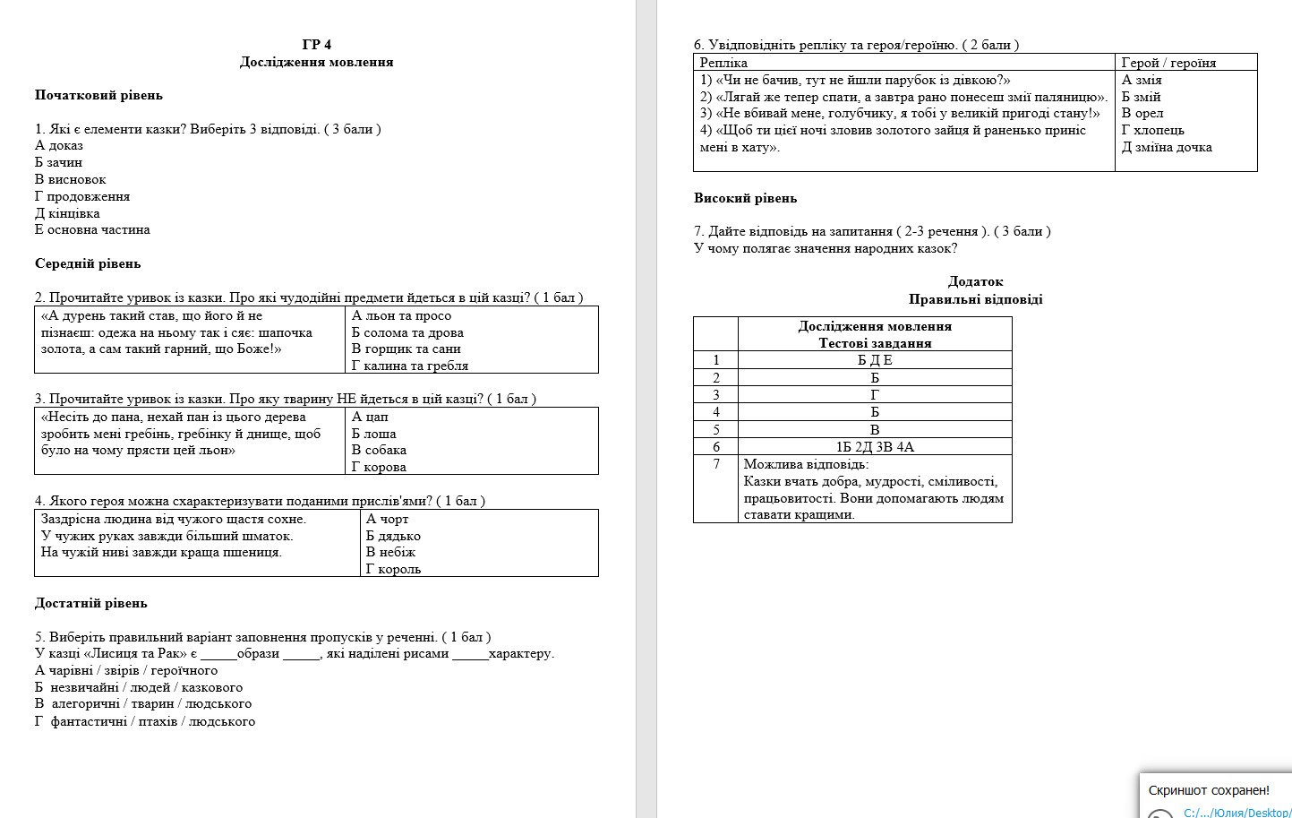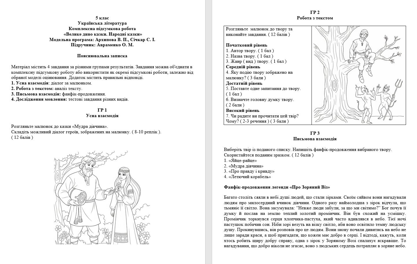 Комплексна підсумкова робота. 5 клас. Українська література “Малі жанри фольклору. Народні ...