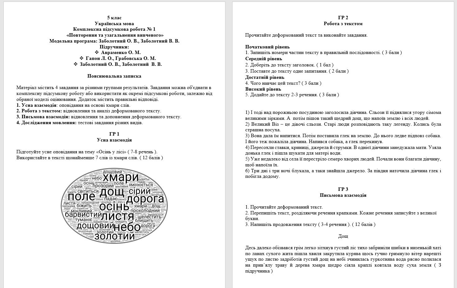 КПР. 6 клас. Українська мова. “Повторення й узагальнення вивченого” за чотирма ГР; 2 ...