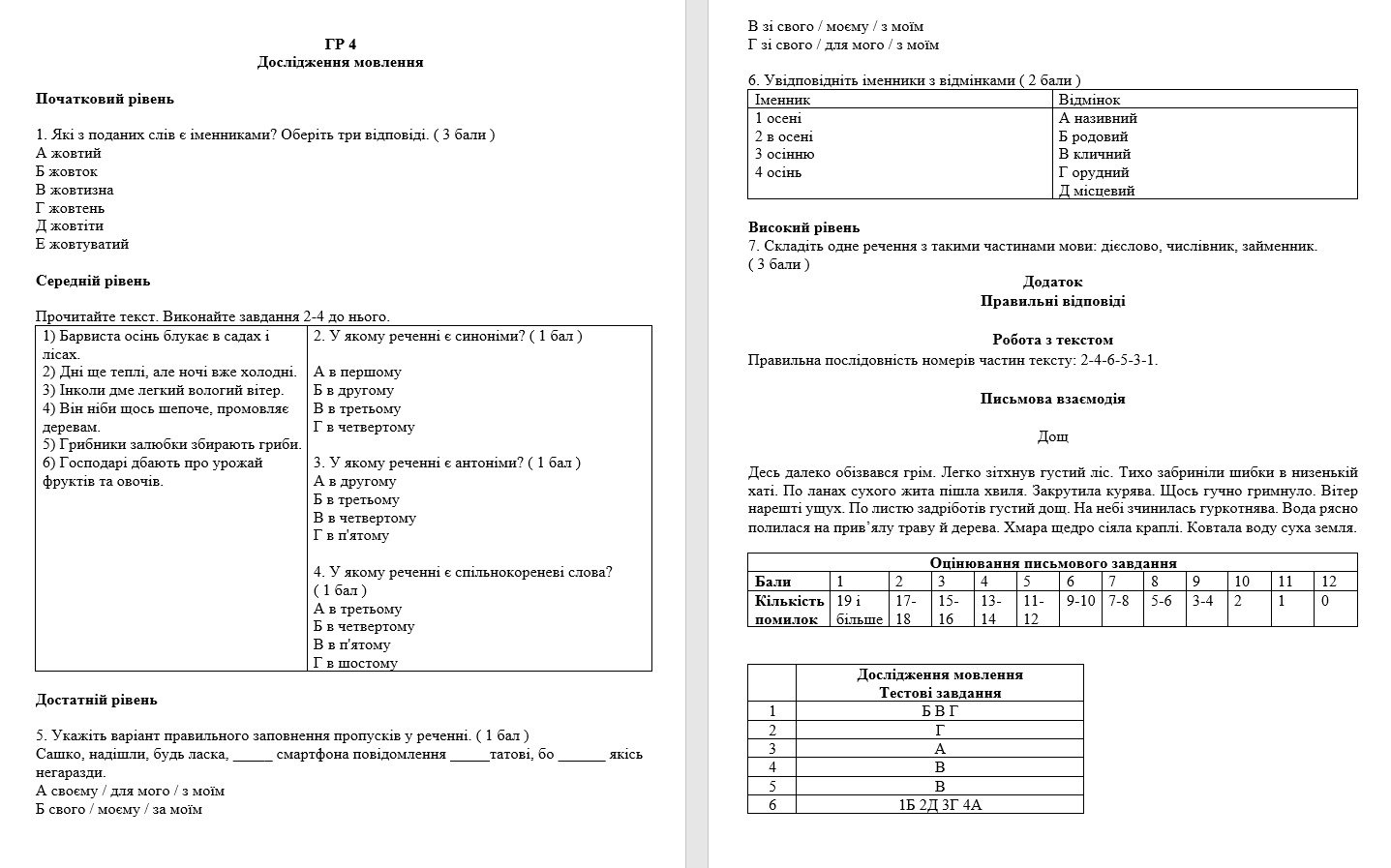 ГР 4. Діагностувальна робота. Повторення та узагальнення вивченого. 6 клас (підручники: Заболотни...