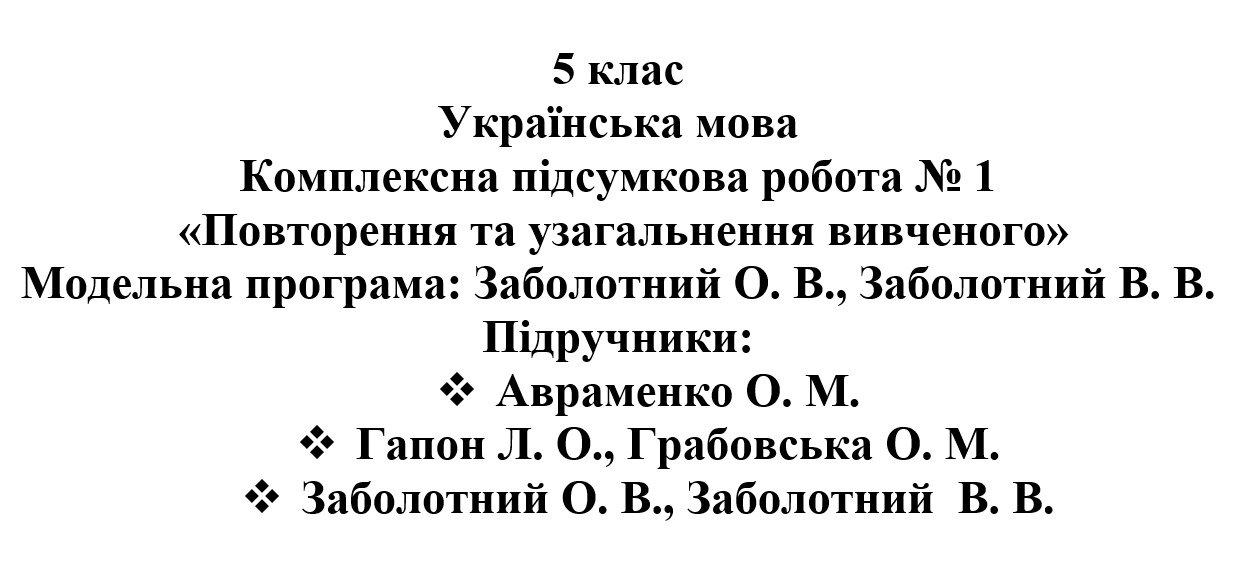 6 клас. Українська мова. Комплексна підсумкова робота № 1 “Повторення та узагальнення вивче...