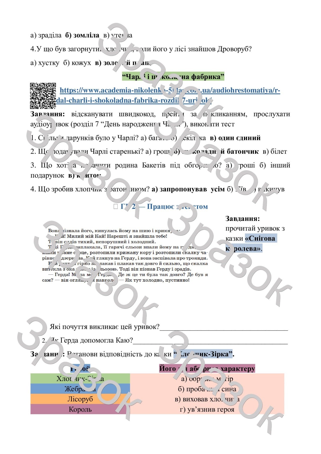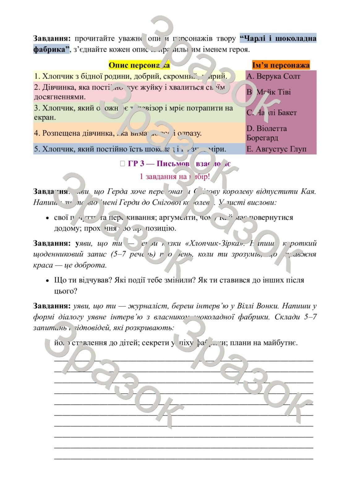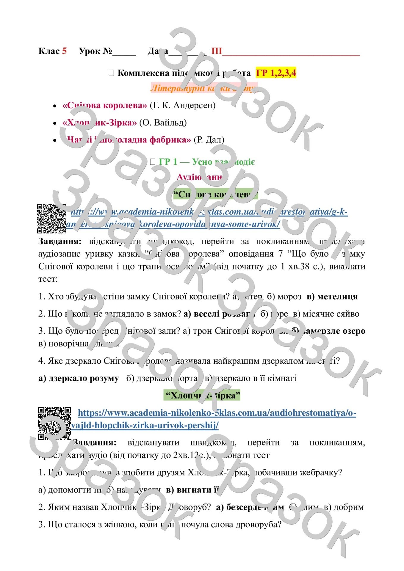 Комплексна контрольна робота “Літературні казки світу” 5 клас Працюємо з текстом( ГР ...