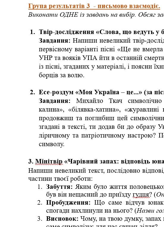 ГР 3 – ТРИ завдання на вибір учня/учениці (або вчителя/ьки) – написання цікавих і креативних творчих робіт;