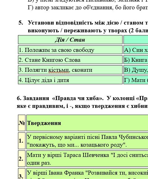 ГР 2 – тестові завдання, завдання на встановлення відповідностей, завдання “Правда чи хиба”;
