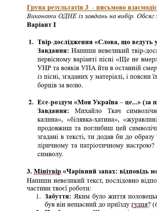 ГР 3 – по ТРИ завдання на вибір учня/учениці (або вчителя/ьки) – написання цікавих і креативних творчих робіт;