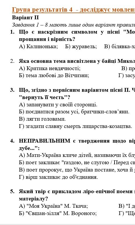 ГР 4. Підсумкова (діагностична) робота. 6 клас. Українська література. “Ліричні послання Ук...