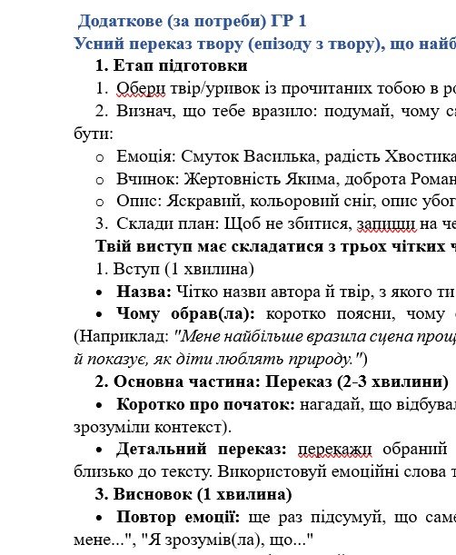ГР 1 – ТРИ завдання в кожному варіанті на вибір учителя/ьки або учня/ениці, що безпосередньо пов’язані з тематикою прочитаних творів та + БОНУС План переказу твору (уривка твору), що найбільше сподобався;