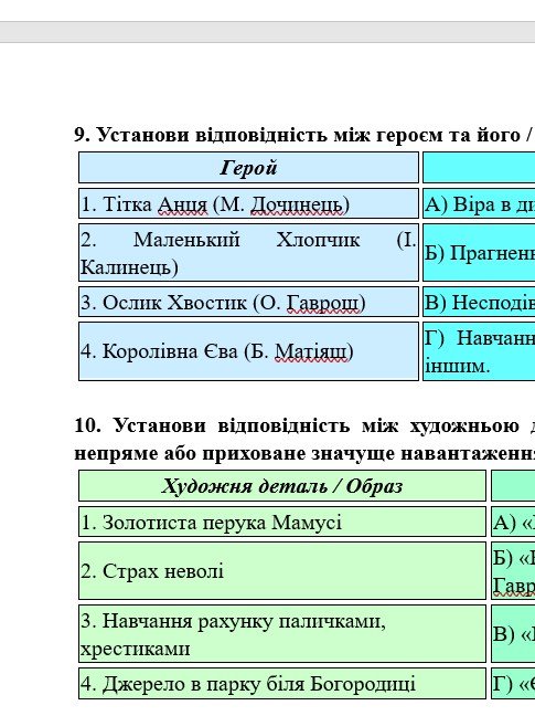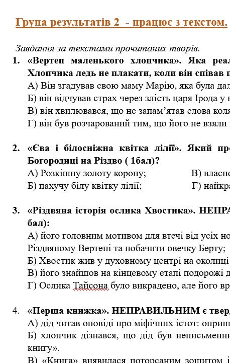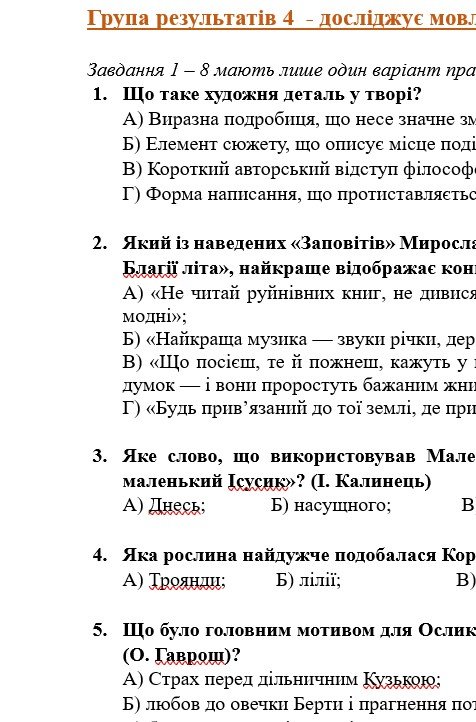 ГР 4 – тестові завдання за прочитаними творами; два завдання на встановлення відповідностей.