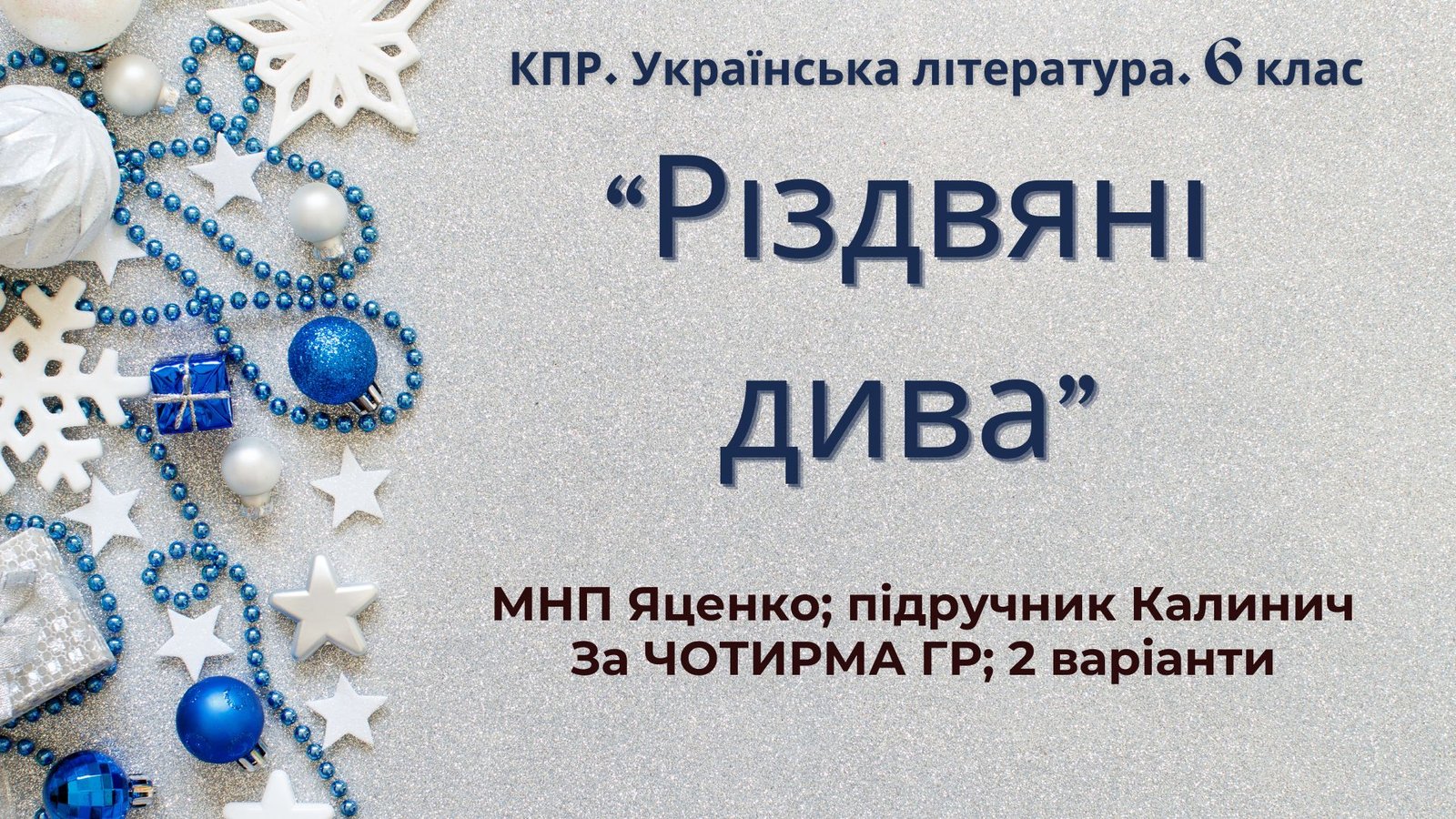Як купити матеріал «6 клас. Комплексна ПР. Укр. література. “Різдвяні дива”; за чотирма ГР (МНП Яценко; підручник Калинич) 2 варіанти»?