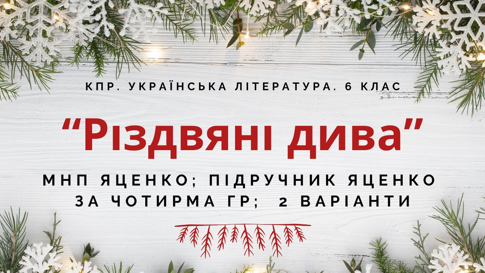 6 клас. Комплексна ПР. Укр. література. “Різдвяні дива”; за чотирма ГР (МНП Яценко; підручник Яценко) 2 варіанти