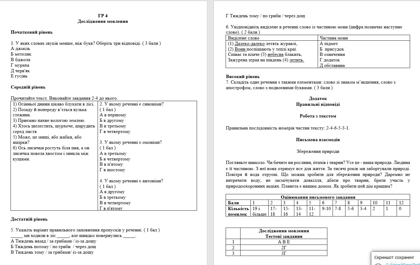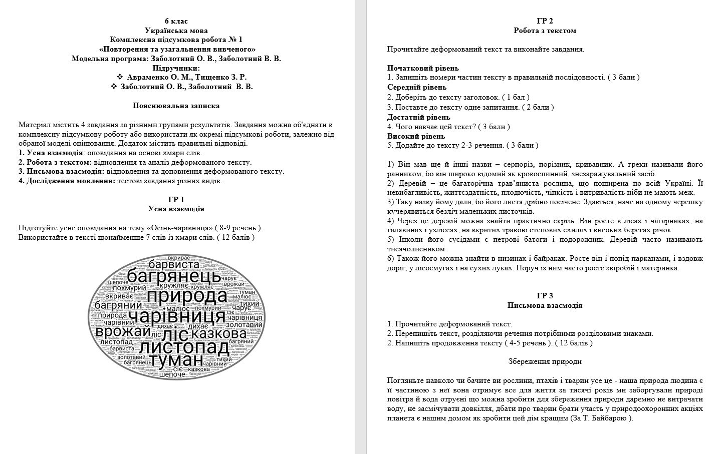КПР. 6 клас. Українська мова. “Повторення й узагальнення вивченого” за чотирма ГР; 2 ...