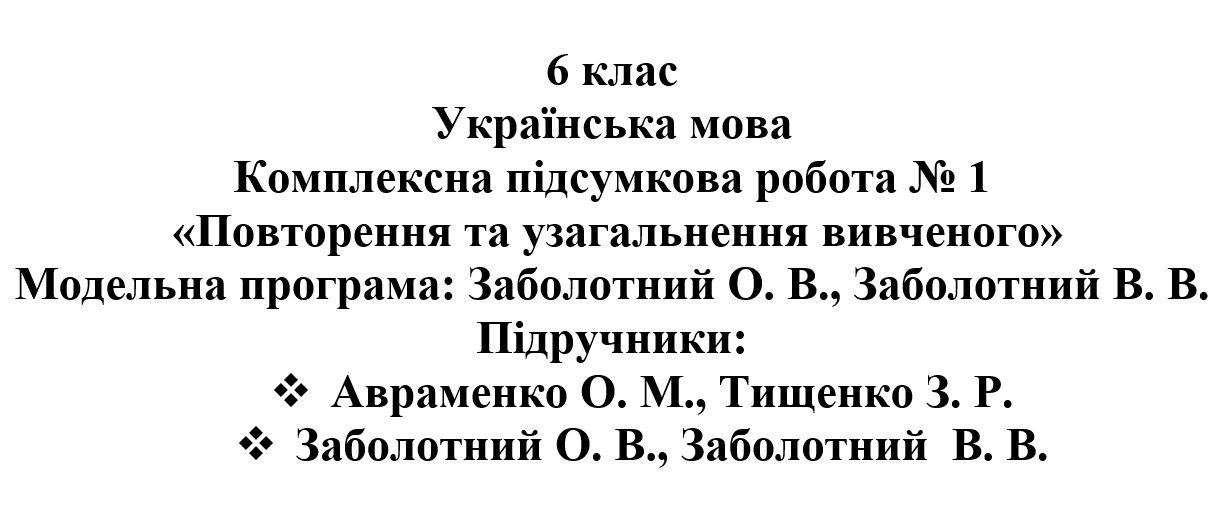 5 клас. Українська мова. Комплексна підсумкова робота № 1 “Повторення та узагальнення вивче...